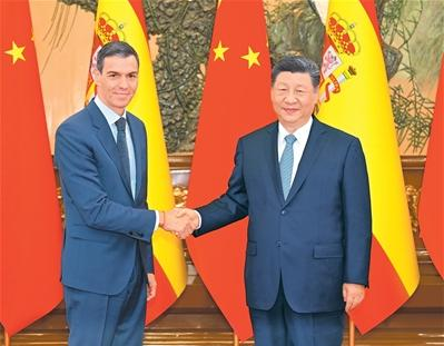 桑切斯表示,我4年来4次访华,表明双方对西中关系的高度重视。中国企业在西投资合作有力促进了西经济发展。西班牙坚定恪守一个中国原则,高度重视中国的大国地位,坚定致力于发展具有战略定力的西中伙伴关系,希望加强贸易、投资、新能源等领域合作,促进人文交流。面对复杂严峻的国际形势和频发多发的冲突争端,只有坚持多边主义、推动构建多极世界才能为人类带来持久和平。西班牙积极支持习近平主席提出的四大全球倡议,愿同中方密切沟通协作,共同应对国际地缘政治、贸易保护主义、气候变化等方面挑战,维护国际法和多边主义。西班牙反对“新冷战”,反对“脱钩断链”,支持欧洲和中国增进沟通理解、加强合作。欧中关系健康发展符合双方共同利益,也有利于世界和平稳定。