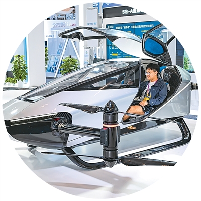 9月4日,媒体记者在2025世界智能产业博览会会场参观体验智能电动垂直起降飞行器。