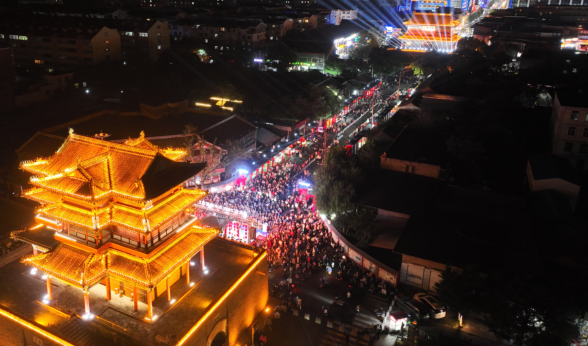 俯瞰张家口市宣化区热闹红火的钟鼓楼文化商业街区。米剑飞 摄