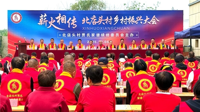 金秋十月,硕果盈枝。10月5日,河北保定唐县北店头村园林材料厂区内彩旗飘扬、人头攒动,一场以“薪火相传,北店头村乡村振兴”为主题的盛会隆重举行。活动同步启动贾氏族谱第三版续修工程,通过深挖文化根脉、凝聚宗族力量,为乡村振兴注入精神动能。