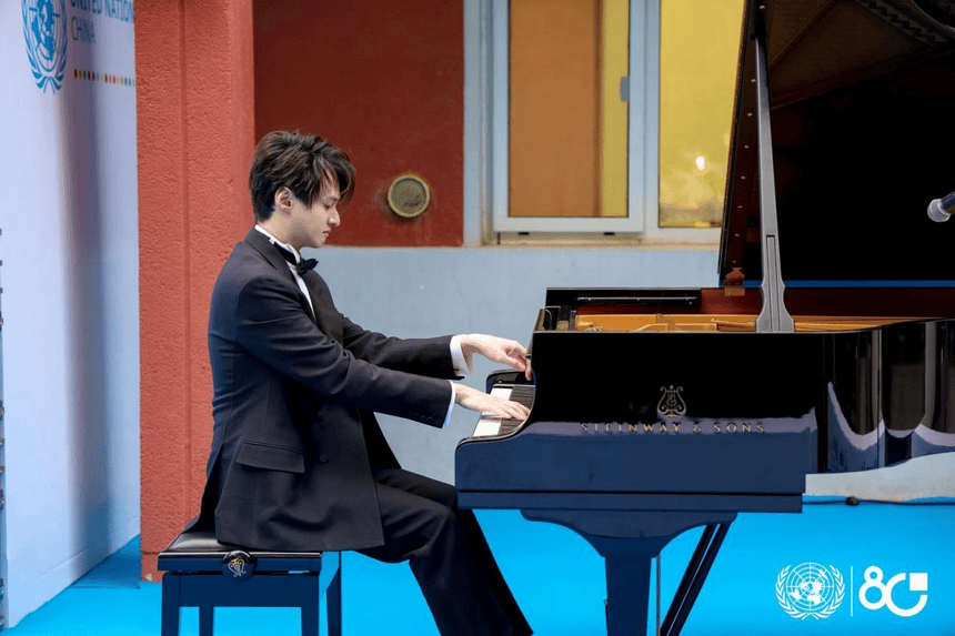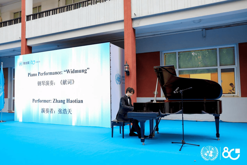 今年的庆祝活动以“共建未来”为全球主题。青年钢琴家张浩天受邀参加此次纪念活动,现场演奏钢琴曲《献词》,以音乐的流动传递爱与希望,重温联合国维护和平、捍卫人权、促进可持续发展这一创立使命。和谐是世界发展的基石,愿我们全人类携手努力,构建一个和谐、美好、永恒的世界。