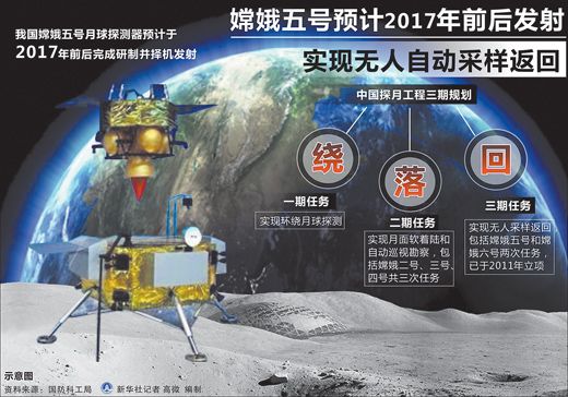 他说,探月工程将转入三期,主要目标是实现无人自动采样返回,嫦娥五号将于2017年前后完成研制并择机发射。