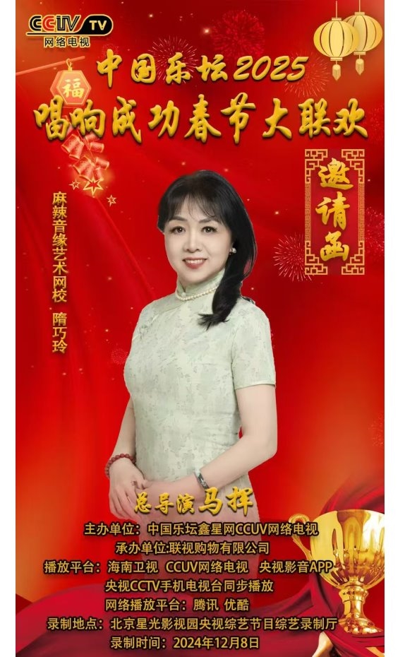 2025年中国乐坛成功唱响春节联欢晚会最佳表演金奖。
