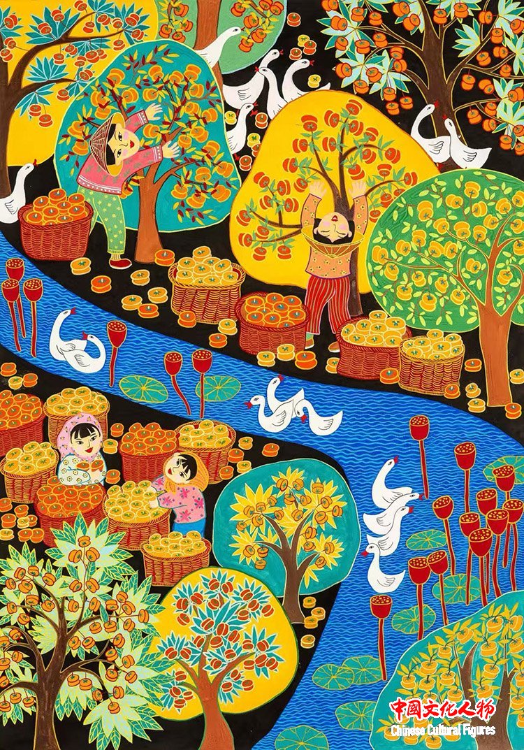赵倩 《河畔收柿庆丰年》 河北