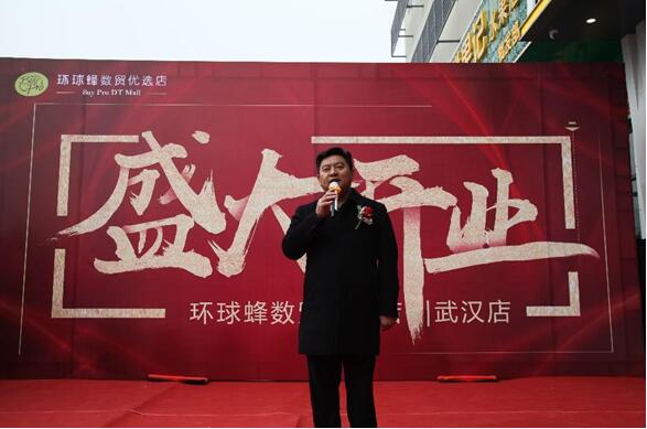 最后,由数贸集团的领头人张冲先生致辞:“ 首先向杨东院长、刘文 献院长,还有来自全国各地的企业家们问好,今天武汉环球蜂首家店开 业,不容易,很辛苦,但是更加的值得,因为我们肩负着数字经济和服 务经济。作为实践者,一路以来,我们战战兢兢、如履薄冰。武汉是一 个因为商业而生的城市,一切的由来都是缘于更大的缘分,我相信在武 汉来落地环球蜂第一个跨境电商实体店,正是时代孕育的结果,因为武汉在近代以来的商业形态和模式被称作“ 东方芝加哥”, 我相信我们整 个数贸店作为第一支“ 蜂”将从武汉起飞,飞遍全球。我相信从第一家 店的开始, 到第二家店,道生一、一生二、二生三、三生万物。我们的第二个店将在福建厦门,第三个店将在孔孟之乡的山东大明湖陆续开业, 公司将在 2019 年率先完成 1000 个店的线下及线上的深度融合战略。一 个店的开始将代表着几千个店的到来,我们不仅要卖好全球各个国家的 产品,更重要的是让中国的品牌以此为契机走向世界,让我们的商业生 态, 在全球“ 蜂” 起来”。
