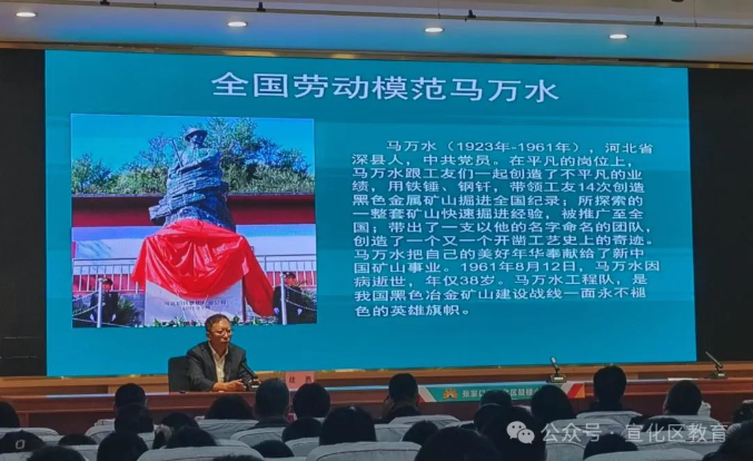 宣化一中战勇副校长讲述宣化区百年龙烟铁矿的光辉发展历程及“一级民兵战斗英雄何金海”和“全国劳模马万水”的故事。