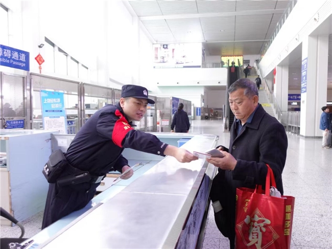 设置宣传台对旅客进行答疑解惑 王梦怡摄